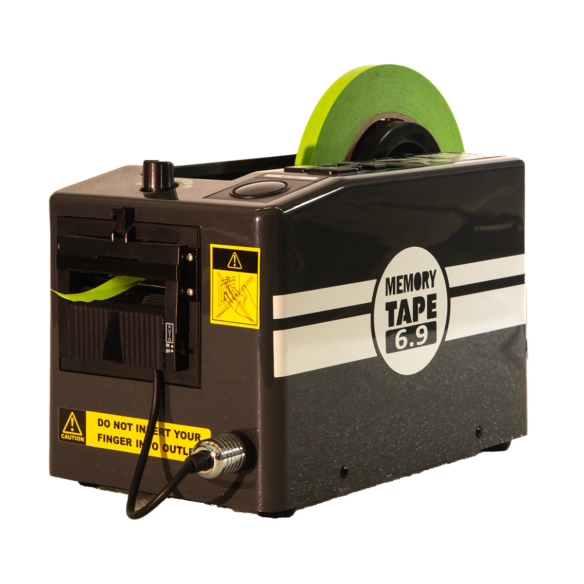 MEMORY TAPE 6.9 è un dispenser compatto da tavolo per distribuire automaticamente nastri adesivi che dà una grande precisione di misura. Il dispenser può utilizzare vari tipi di nastro adesivo, compresi masking e strapping, oltre alla maggior parte dei nastri bi-adesivi, rendendolo utile per assemblaggi e per chiudere piccoli e leggeri imballaggi.