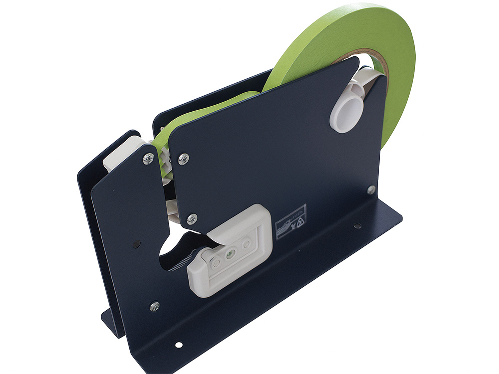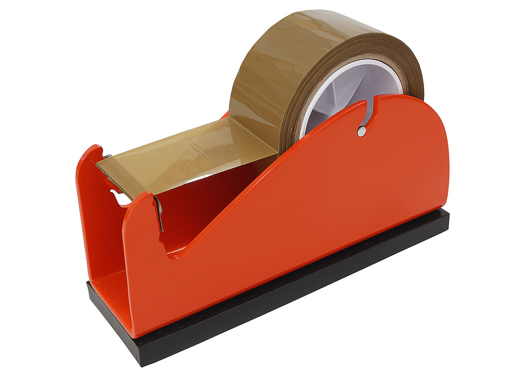 Robusto dispenser da banco per nastri adesivi in PVC e PPL con anima standard da 3″, fino a 145 mm di diametro nelle misure 50, 75, 100 e 150 mm di larghezza.